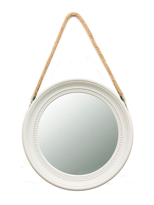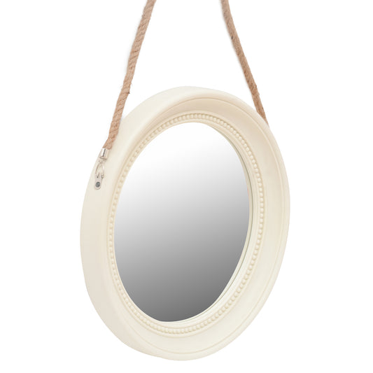Espejo decorativo para colgar redondo 33 cm. con soga crema