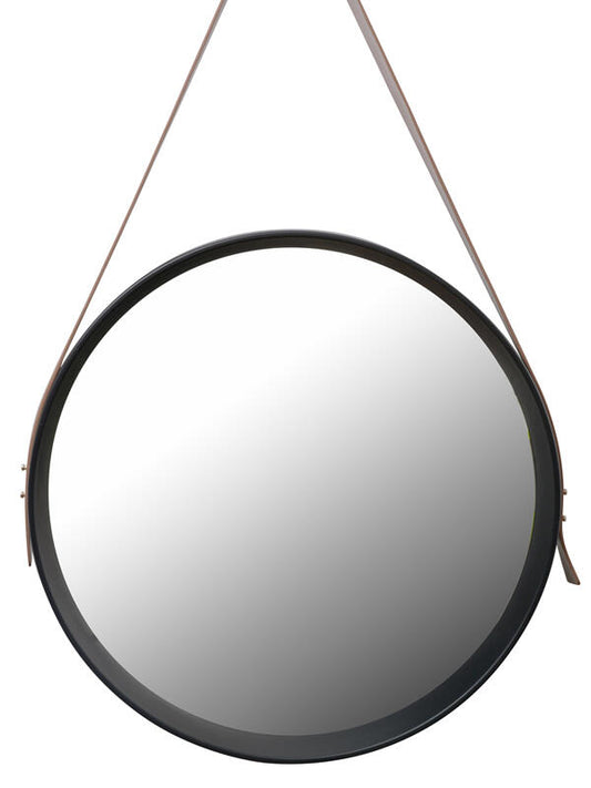 Espejo decorativo para colgar redondo 40 cm. con correa negro