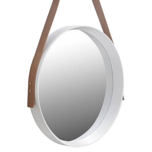 Espejo decorativo para colgar redondo 40 cm. con correa blanco