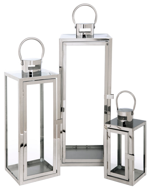 Fanal en Set de 3 unid metalicos 57x18x18 cm. Plateado