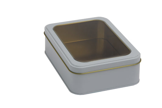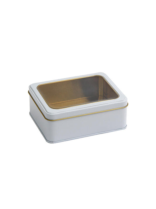 Lata decorativa rectangular con tapa transparente 13x11x5 cm