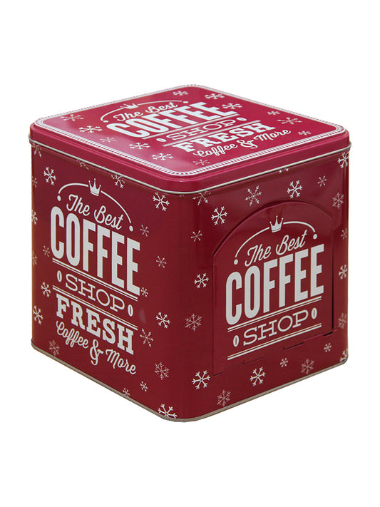 Lata metálica rectangular chica con diseño café 14x10x4 cm