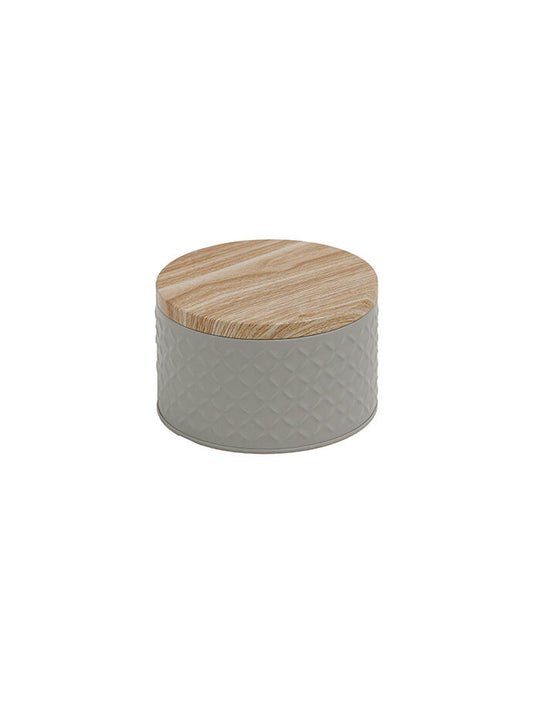 Lata decorativa circular con tapa vertedora 14x11 cm