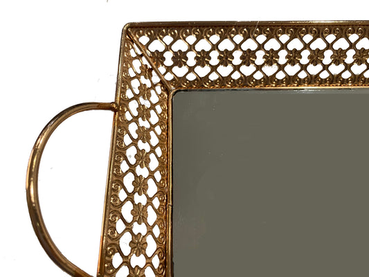 Bandeja metalica rectangular espejada 25x35x5.3 cm. Dorado