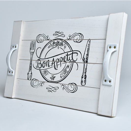 Bandeja madera con Agarraderas metalicas 4x40x24 cm